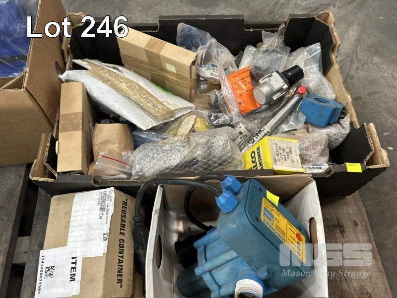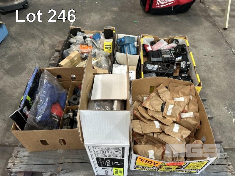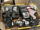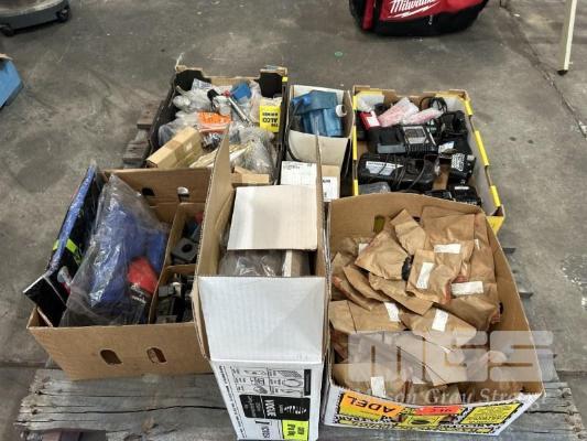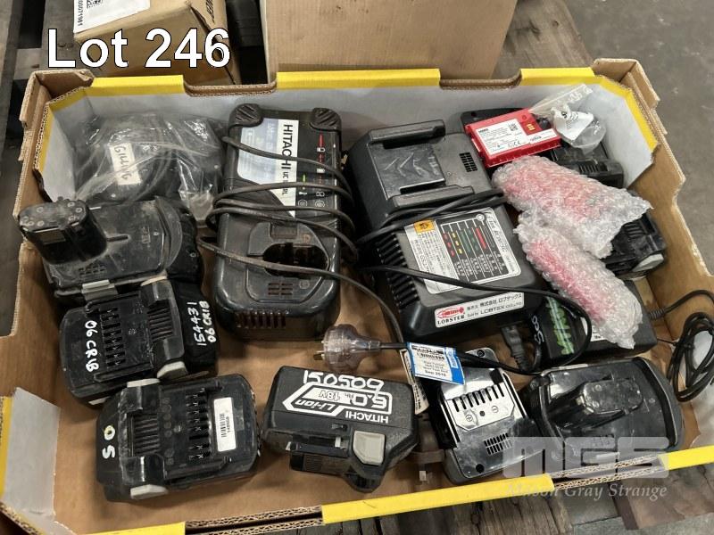 CORDLESS POWER TOOL BATTERIES, HITACHI & CHARGER, ASSORTED ELECTRONICS & PNEUMATIC COMPONENTS, WALL MOUNT FAN, ETC
