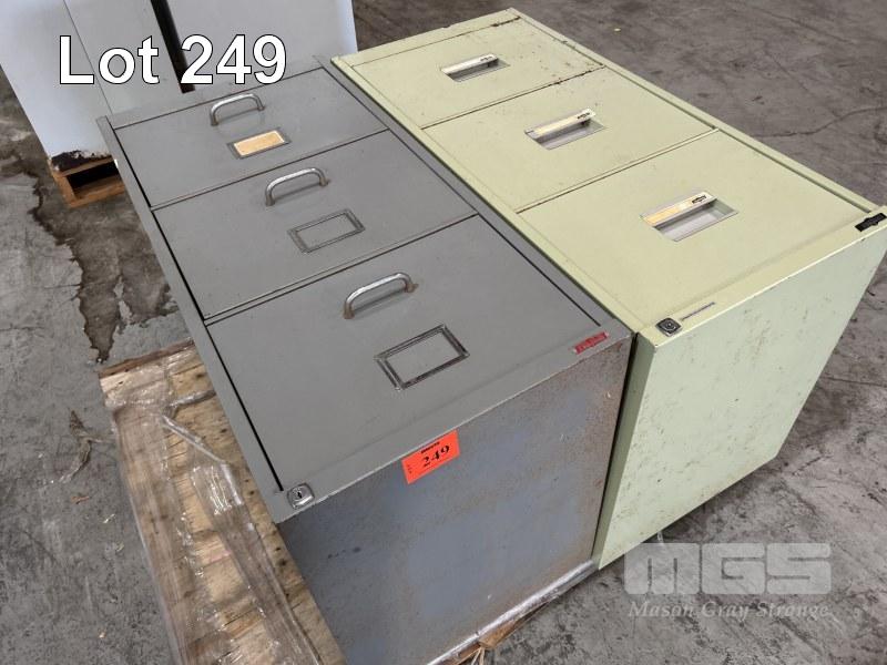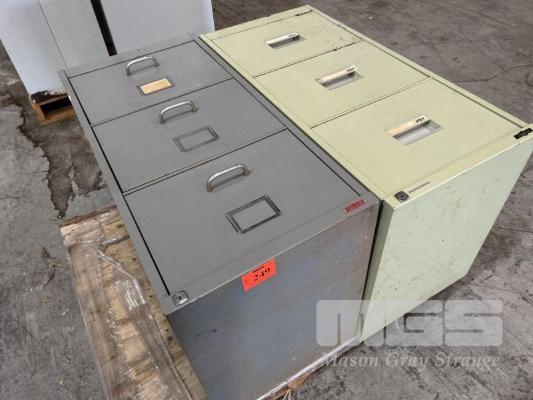 2 x FILING CABINETS, GREEN & GREY STEEL, 3 DRAWER