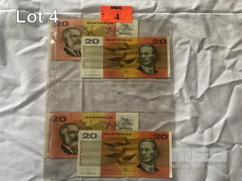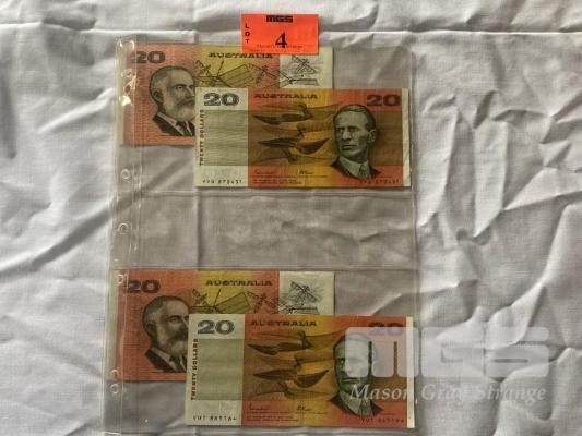 4 X AUSTRALIAN PAPER 20 DOLLAR NOTES