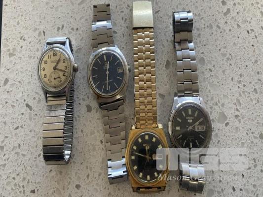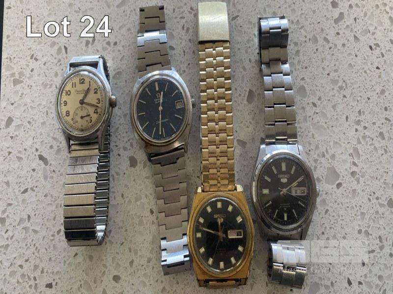 4 X GENTS WRISTWATCHES INC 2 X SEIKO 5 AUTOMATIC 21 JEWELS DAY/DATE, ERNEST BOREL & OMEGA SEAMASTER