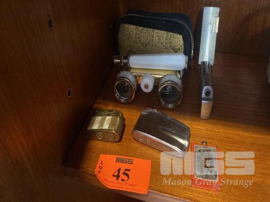 MOTHER OF PEARL INLAY OPERA GLASSES & CASE & ASSORTED VINTAGE LIGHTERS