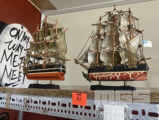 2 X MODEL SAILING SHIPS ON DISPLAY STANDS