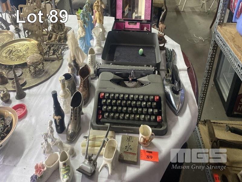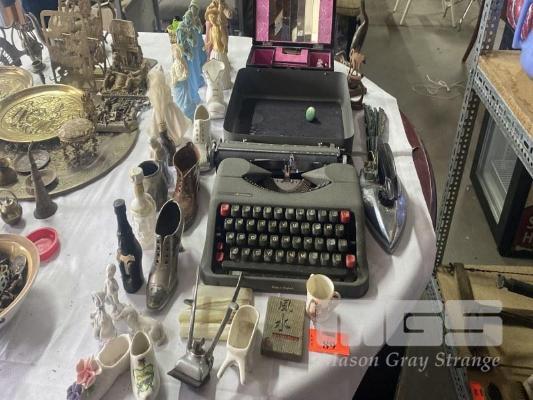 VINTAGE WARES, ARISTOCRAT (ENGLAND) TYPEWRITER, AVON FIGURAL PERFUME BOTTLES, CERAMIC BOOT ORNAMENTS, HAIR CLIPPERS ETC
