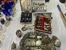 EPNS CUTLERY CANTEEN, DESSERT AND TEASPOON SETS, ENTREE FORKS, SALVER, CONDIMENT DISHES ETC