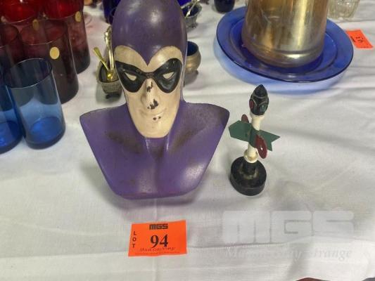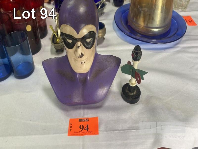 CAST IRON PHANTOM HEAD BUST & RAILWAY SIGNAL ORNAMENT