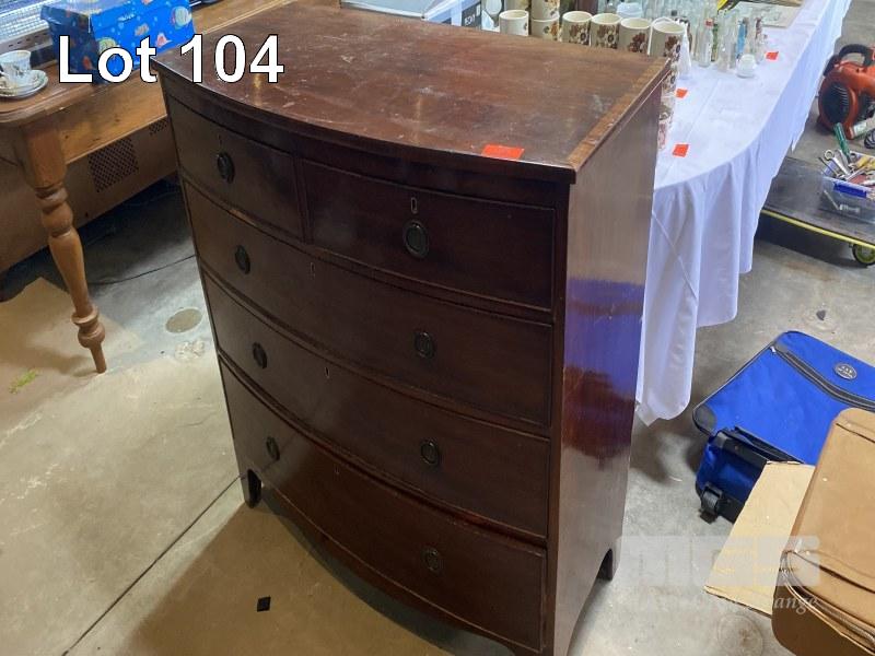 MAHOGANY BOW FRONTED 4 DRAWER DRESSER