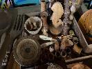 ASSORTED WOODWARE, CARVINGS, BOWLS, ETC