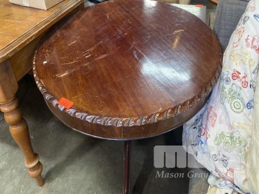 CIRCULAR DINING TABLE, MAHOGANY, SINGLE PEDESTAL BASE, PIE CRUST EDGE