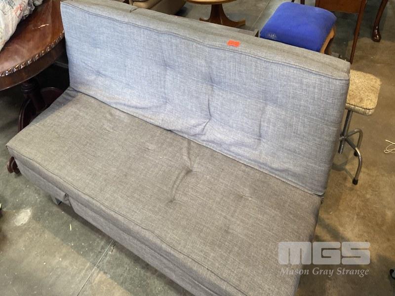 FUTON, GREY FABRIC UPHOLSTERED, CLICK CLACK SOFA BED