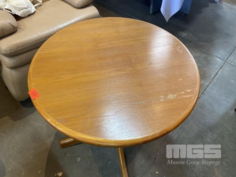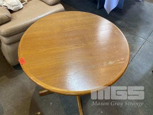 TIMBER PEDESTAL COFFEE TABLE. ROUND. MID CENTURY STYLE.