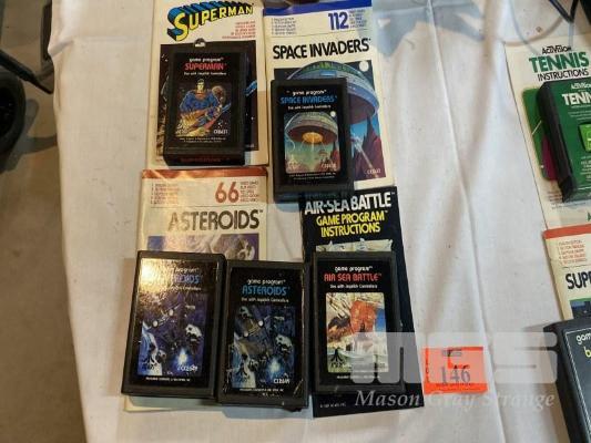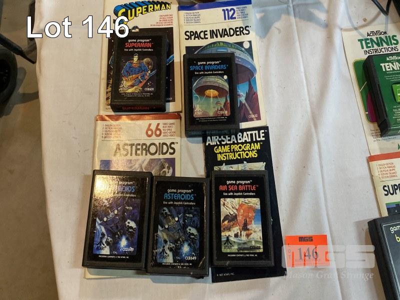 5 x ATARI GAME CARTRIDGES WITH INSTRUCTIONS, ASTEROIDS, SUPERMAN, SPACE INVADERS, AIR SEA BATTLE