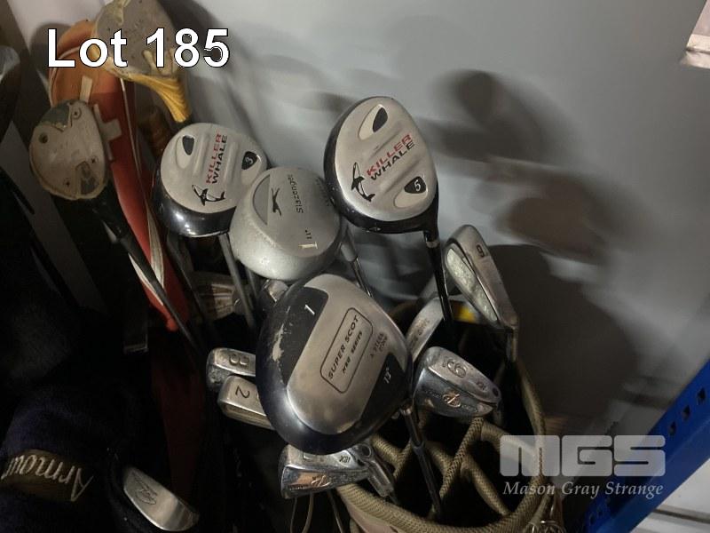 3 x PART GOLF SETS, BAG & BUGGY, KILLER WHALE SUPER SCOT & SLAZENGER DRIVERS, ETC