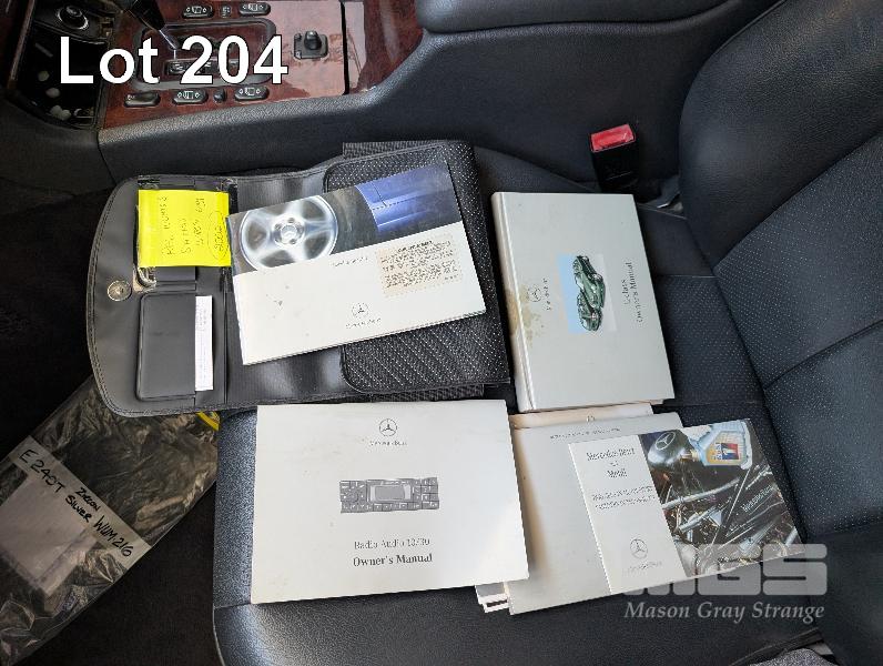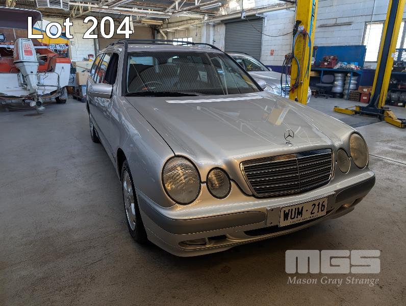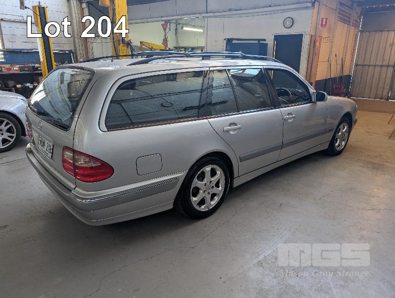 2002 MERCEDES BENZ E240T STATION WAGON REG: WUM216 (SA) (EXPIRED) VIN: WDB2102622X080975 ENG: 11291431263810 ODO: 201,195 2.4 LTR, 5 SPEED AUTO, PETROL, SILVER, 5 DOORS, 7 SEAT, ABS, AIR BAG, AIR CON, ALLOY WHEELS, CD PLAYER, CENTRAL LOCKING, CRUISE CONTROL, IMMOBILISER, LEATHER TRIM, POWER STEERING, POWER WINDOWS, ROOF RACKS, SPARE WHEEL, TRACTION CONTROL (WITH PAPERS, WITH 1 KEY/S, WITH OWNER'S MANUAL, WITH SERVICE BOOKS)