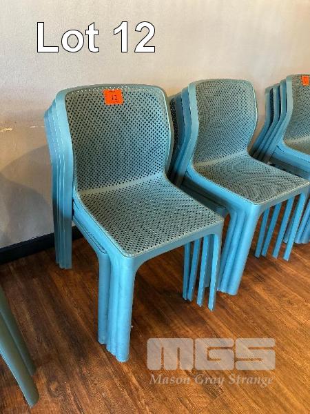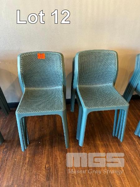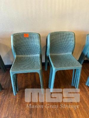 8 x BLUE PLASTIC CAFE STACKABLE CHAIRS, CHAIRFORCE
