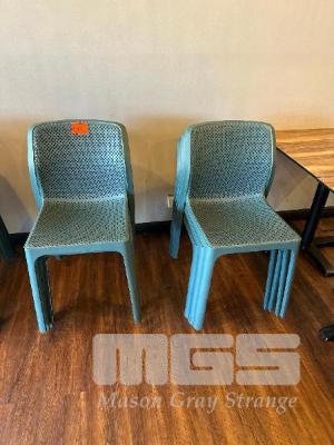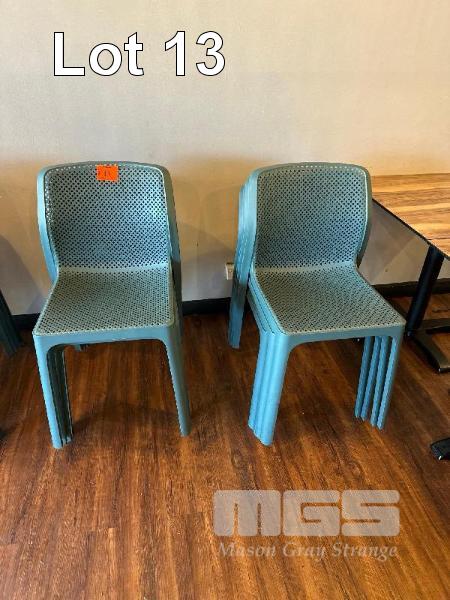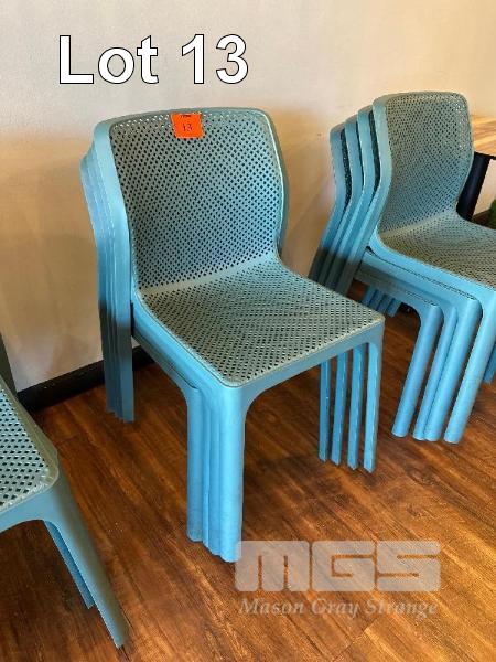8 x BLUE PLASTIC CAFE STACKABLE CHAIRS, CHAIRFORCE
