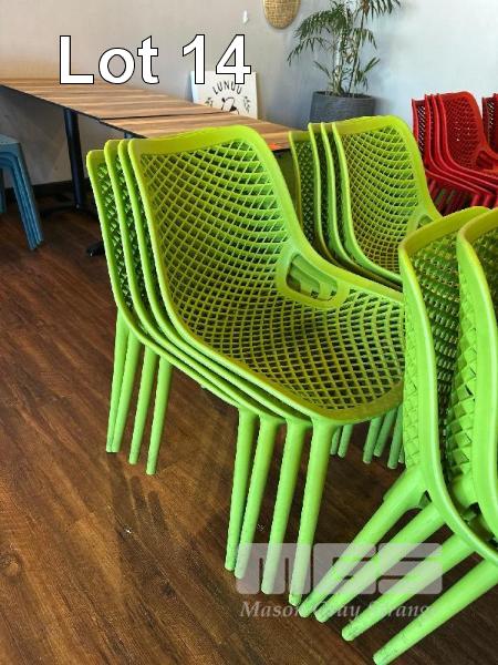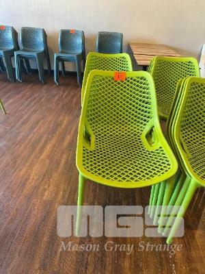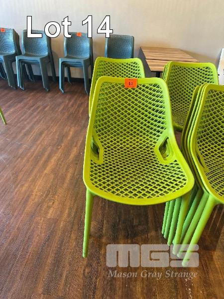 8 x GREEN PLASTIC CAFE STACKABLE CHAIRS, CHAIRFORCE