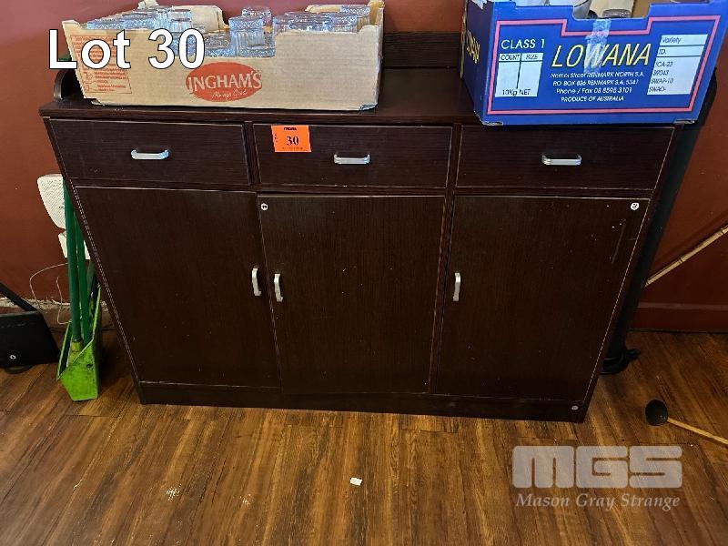 3 DOOR, 3 DRAWER BUFFET BROWN TIMBER LAMINATE 1200 x 410 x 830mm (H)