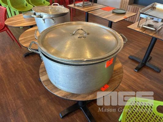6 x LARGE STAINLESS STEEL POTS, UPTO 60cm (D)