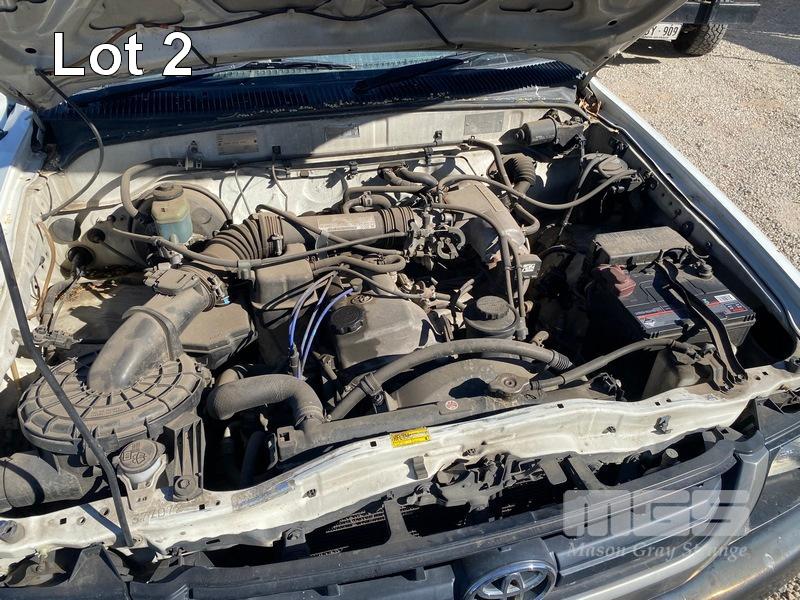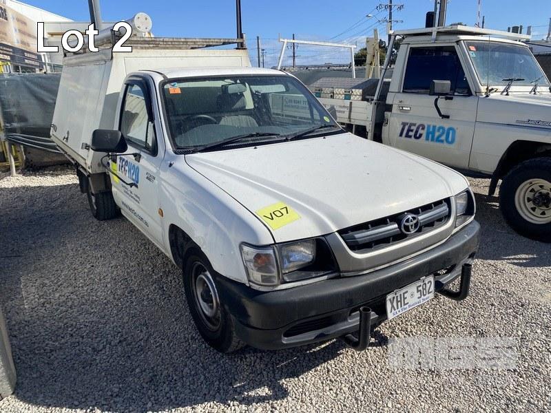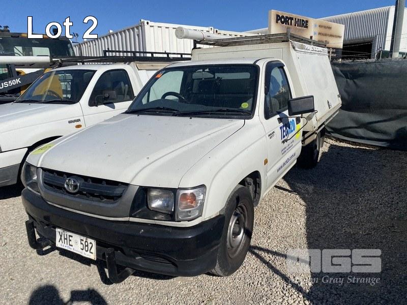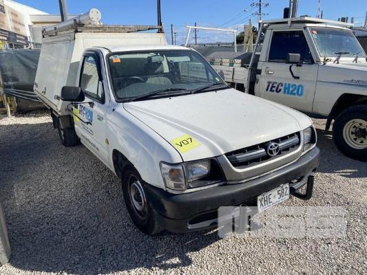 2003 TOYOTA HILUX RZN149R SINGLE CAB TRAYTOP UTILITY 2WD REG: XHE 582 VIN: JTFAM426700125456 ODO: 443,378kms INDICATED PLANT NO: V07 2.4 LITRE 4 CYLINDER PETROL, 4 SPEED AUTOMATIC TRANSMISSION, 2WD WITH CANOPY & LADDER RACKS