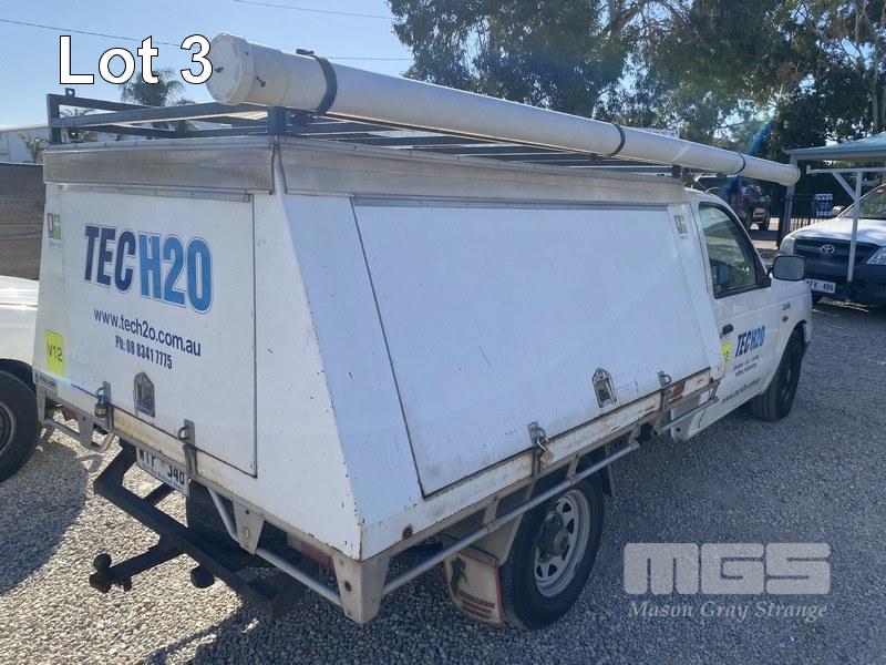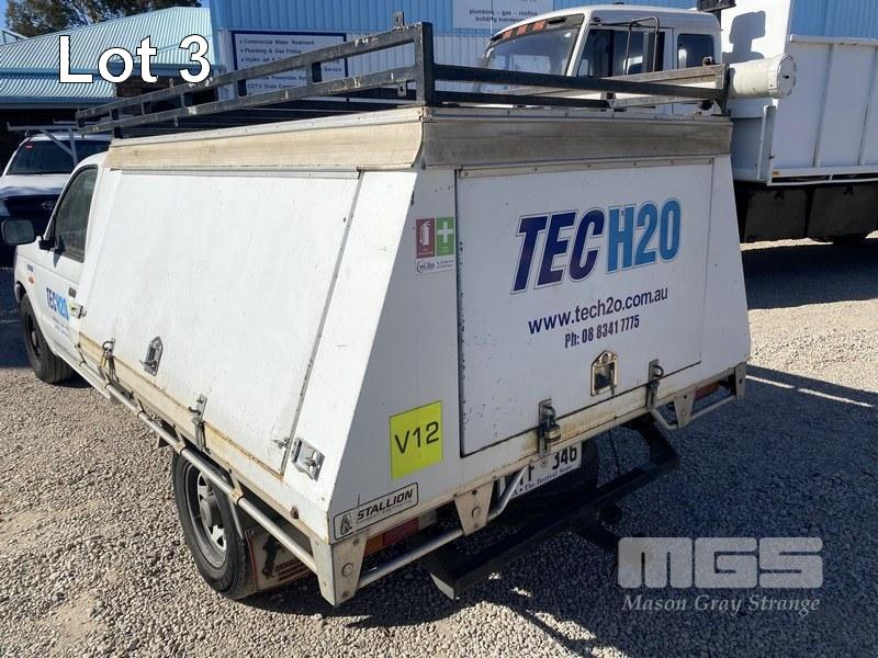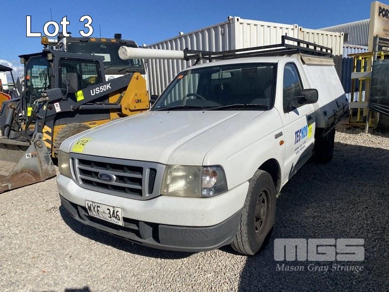 2003 FORD COURIER GL, PG SINGLE CAB TRAYTOP UTILITY 2WD REG: WYF 346 VIN: MNABSAD703W346946 ODO: 308,896kms INDICATED PLANT NO: V12 2.6 LITRE 4 CYLINDER PETROL, 5 SPEED MANUAL TRANSMISSION, 2WD WITH CANOPY & LADDER RACKS