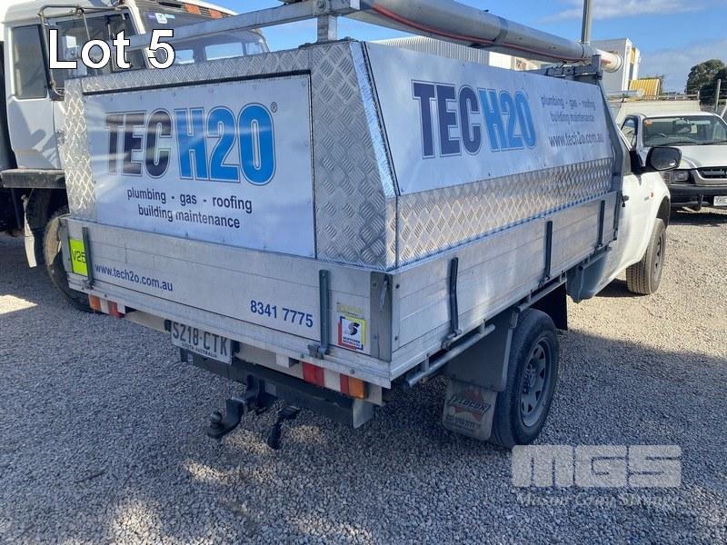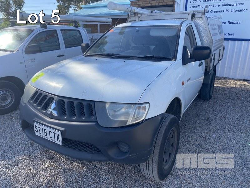 2007 MITSUBISHII TRITON GL ML SINGLE CAB TRAYTOP UTILITY 2WD REG: S218 CTK VIN: MMBENKA507F003208 ODO: 221,662kms INDICATED PLANT NO: V25 2.4 LITRE 4 CYLINDER PETROL, 5 SPEED MANUAL TRANSMISSION, 2WD ALUMINIUM CANOPY & LADDER RACKS