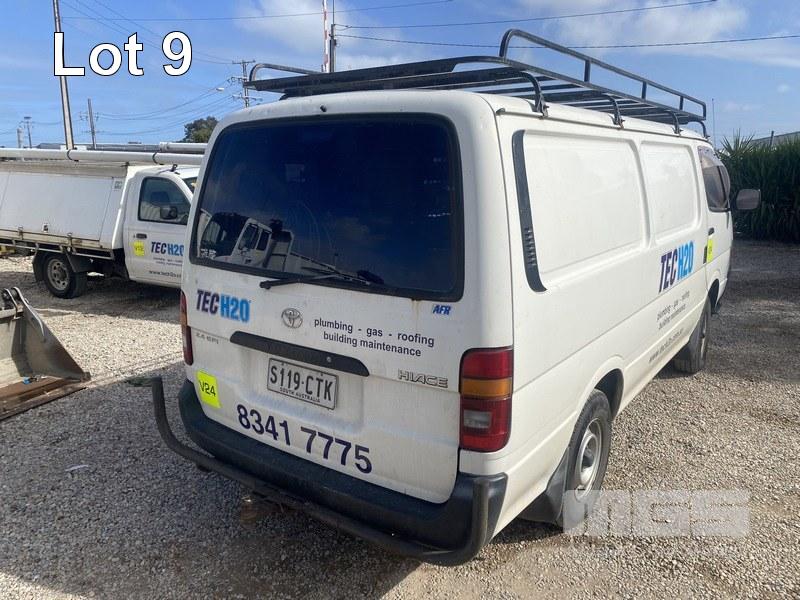 2004 TOYOTA HIACE RZH113R 4 D LONG VAN REG: S119 CTK VIN: JT721UHB105004997 ODO: 412,982kms INDICATED PLANT NO: V24 2.4 LITRE 4 CYLINDER PETROL, 4 SPEED MANUAL TRANSMISSION,