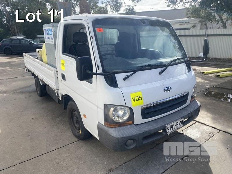 2003 KIA TU SERIES CAB CHASSIS TRAY TRUCK REG: S491 BMM VIN: KNCSD011247962148 ODO: 153,577kms INDICATED PLANT NO: V05 GVM: 6,000kg 2.7 LITRE D4 DIESEL, 4 SPEED MANUAL TRANSMISSION, FITTED WITH 2016 JETWAVE HYDRO JETTER DRAIN CLEANER MOD: PM280 26 LPM 4200 PSI REMOTE & MAIN, HOSE REELS & HOSES 200 LITRE POLY TANK VANGUARD 27HP PETROL ENGINE EQUIPMENT WINCH/MARCO