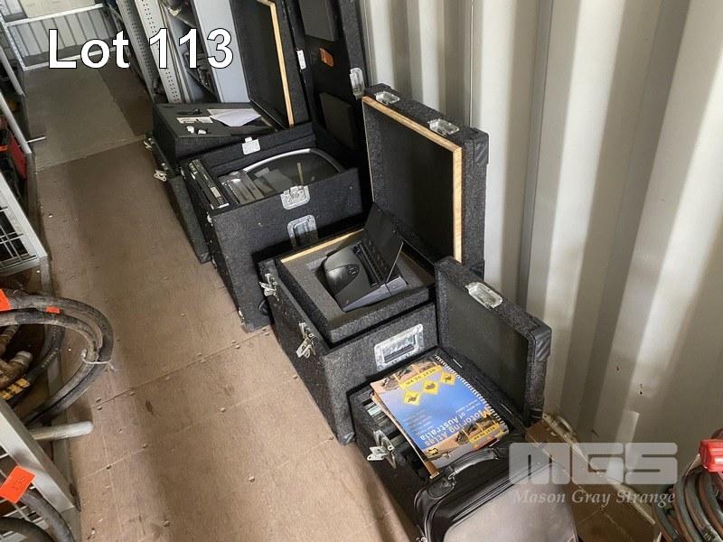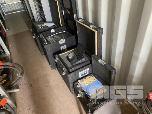 4 x TRANSPORTATION CONTAINERS & CONTENTS TESTING EQUIPMENT, PRINTER, MONITOR & GARMIN GPS SYSTEM