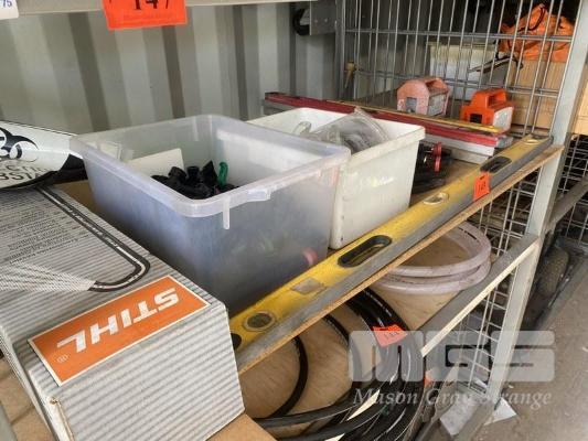 ASSORTED TOOLS, LEVELS, CLAMPS, POWER BOARD, ETC 1 x SHELF
