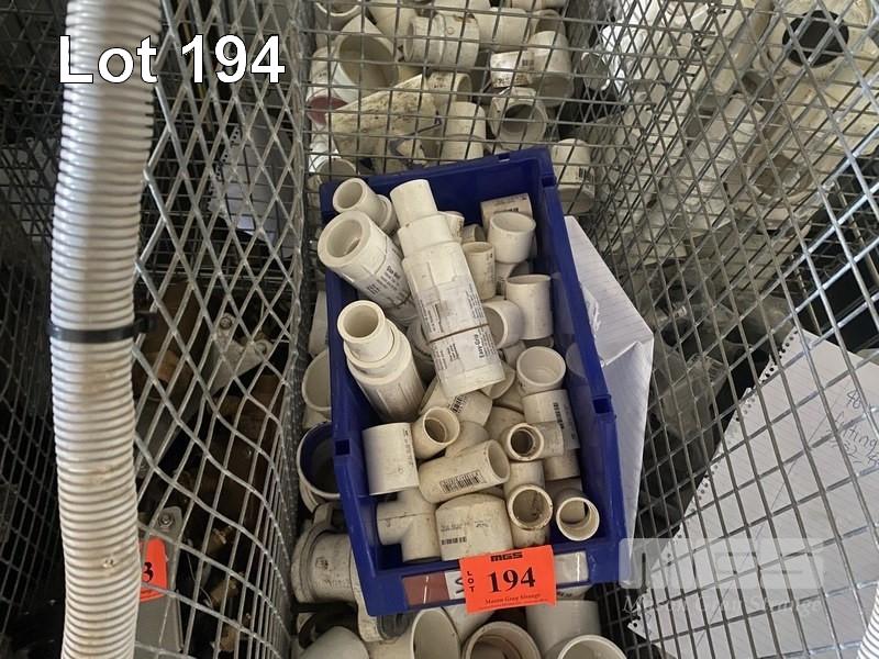 ASSORTED PVD FITTINGS, 25 & 20mm, 5 x SLIP COUPLING REPAIR JOINTS, 25mm, 44 x GLUED SOCKETS, 25mm, 4 x PVC T PRESSURE PIPE, 25mm, 42 x PVC GLUED FITTINGS, 50mm & 124 x PVC GLUED PRESSURE FITTINGS, 40 & 50mm