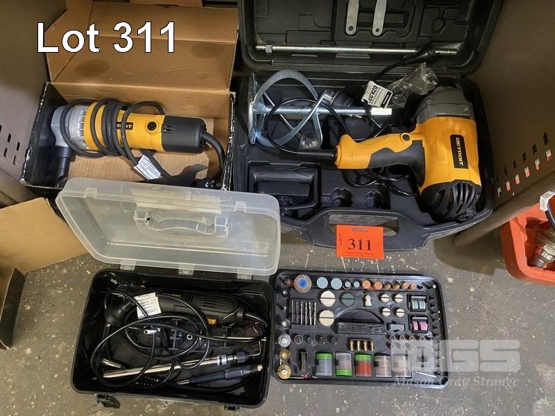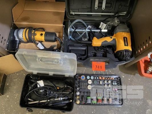 DETROIT POWER TOOLS INCLUDING ELECTRIC MIXING DRILL, ROTARY TOOL & SHEET METAL NIBBLER,
