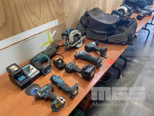 7 x MAKITA CORDLESS TOOLS, 2 x BATTERIES & CHARGER WITH CRAFTRIGHT TOOL BAG