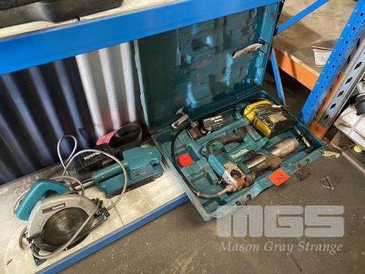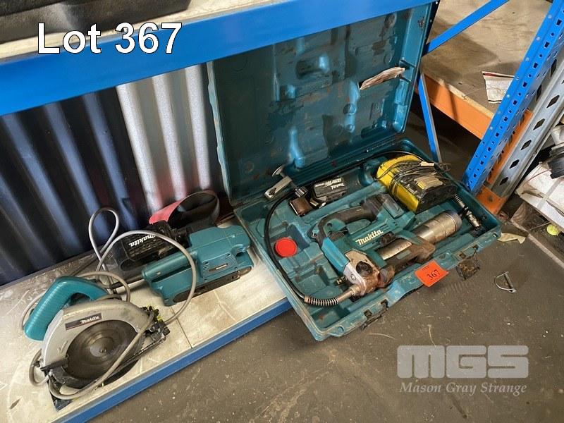 3 x MAKITA TOOLS INCLUDING, CORDLESS GREASE GUN, BELT SANDER & CIRCULAR SAW