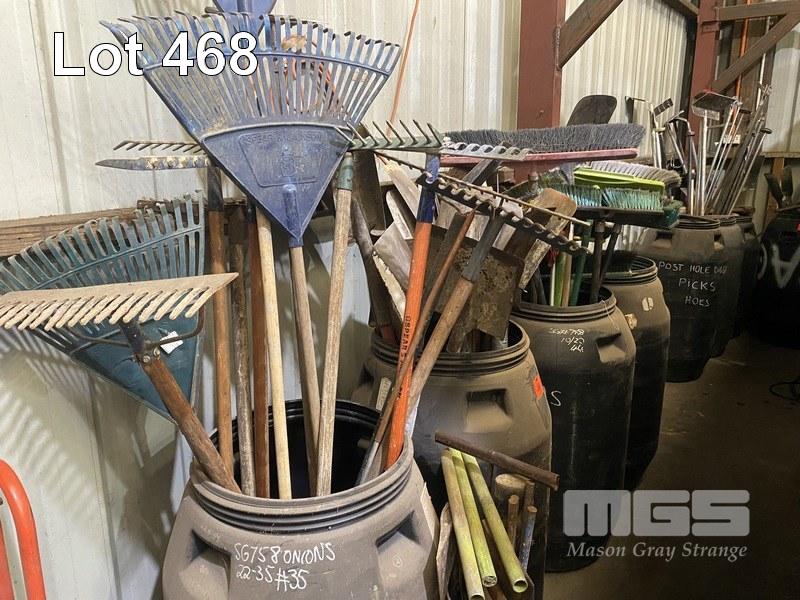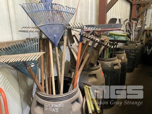 ASSORTED GARDEN TOOLS, 4 x PLASTIC BARRELS