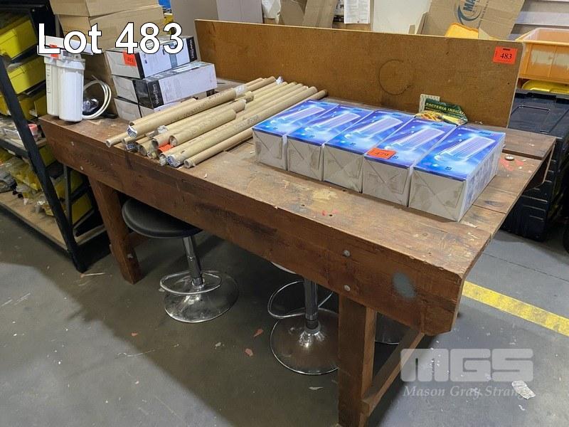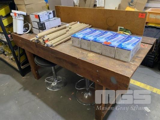 CABINET MAKERS BENCH, TIMBER, 2100 x 900 x 400mm & 3 x STOOLS