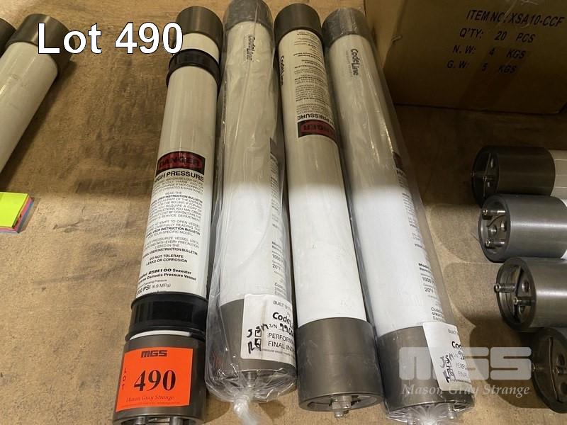 4 x SEAWATER DESAL MEMBRANE HOUSINGS, 20 x 2.5" WITH STAINLESS ENDS