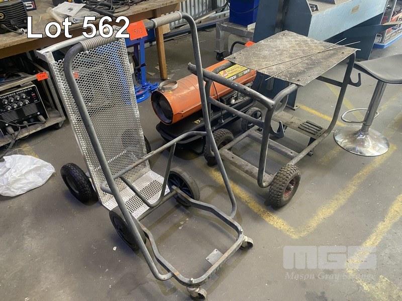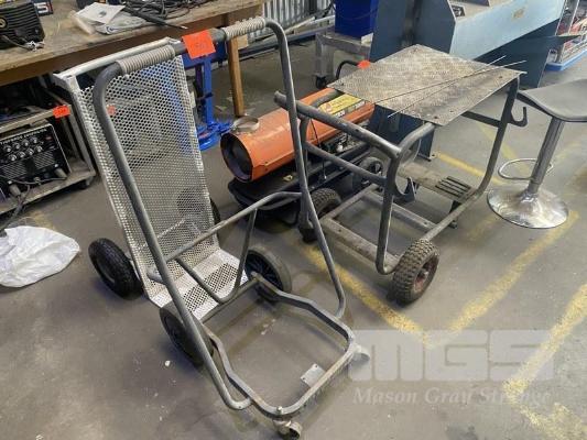 3 x TROLLIES INCLUDING 2 x 4 WHEEL & 1 x PERFORATED ALUMINIUM HAND TROLLEY