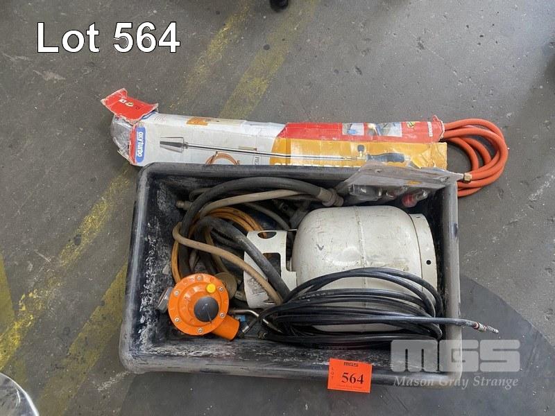 GAS BLOW TORCH, BOTTLE, HOSES, ETC