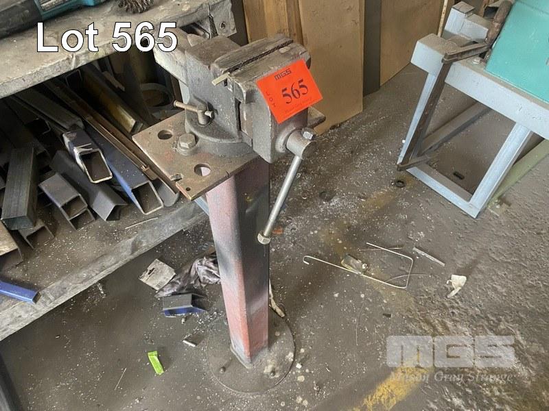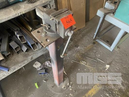 WORKSHOP VICE ON FABRICATED STEEL PEDESTAL