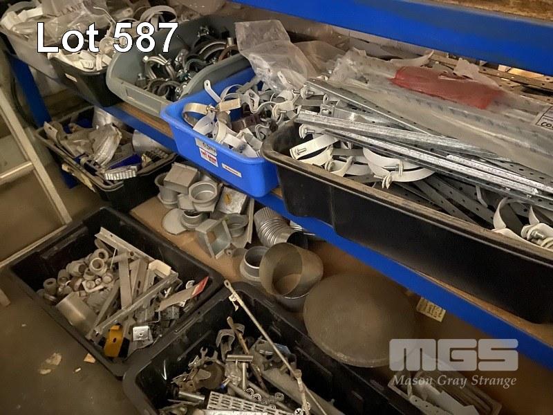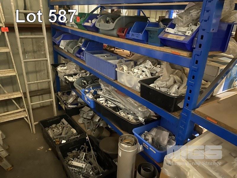 ASSORTED PLUMBERS HARDWARE, DOWNPIPE BRACKETS, GUTTER FITTINGS, ETC