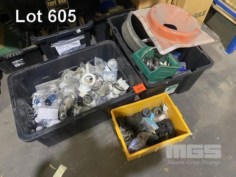 PLUMBING SUPPLIES INCLUDING FLOOR TRAPS, RUBBER TOILET SEALS, FLASHINGS, ETC