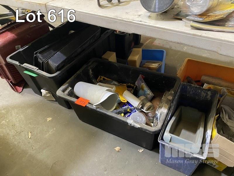 PLASTIC TUBS & ASSORTED PAINTING EQUIPMENT