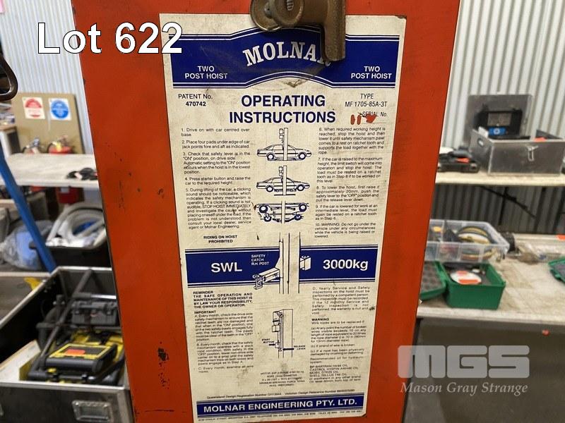 TWIN POST MOTOR VEHICLE HOIST, MOLNER