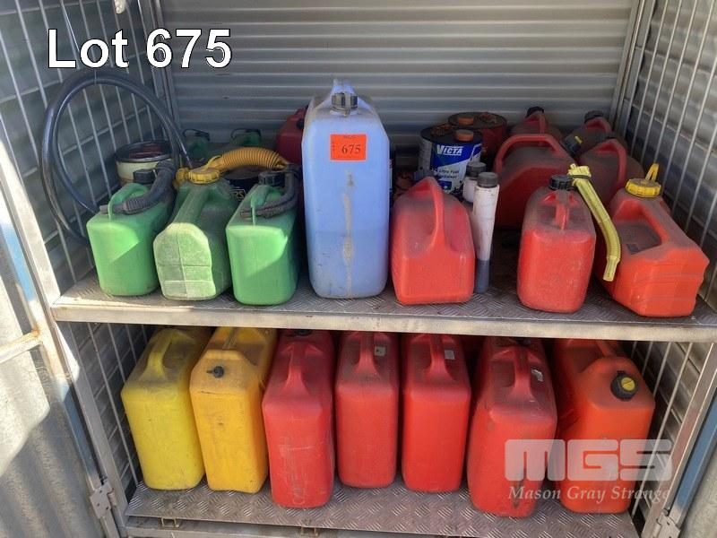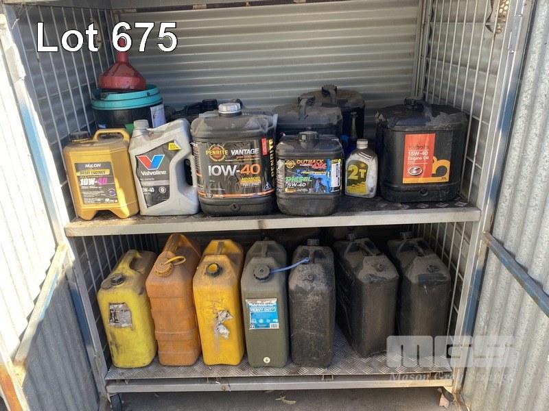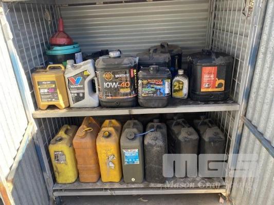 ASSORTED CONTAINERS & CONTENTS FUELS & OILS
