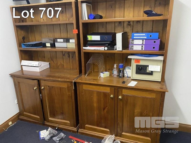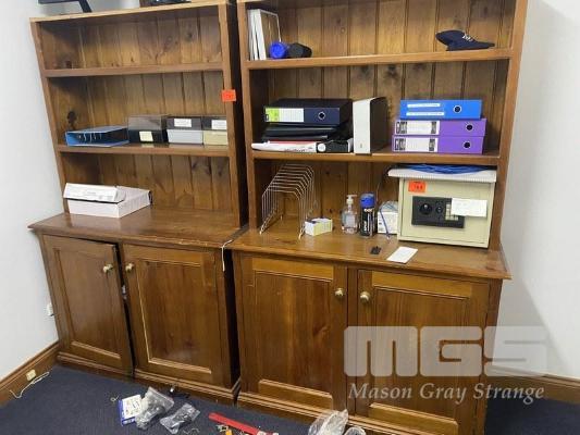 2 x BOOKCASES, STAINED TIMBER, 2 DOOR