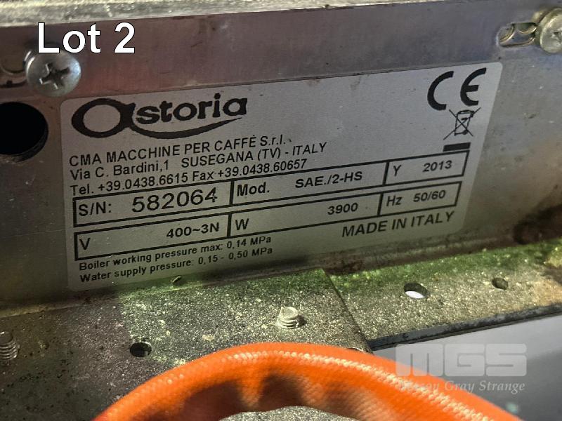 ESPRESSO MACHINE, ASTORIA MOD: SAW12-HS DOM: 2013 2 GROUP HEAD TWIN STEAMER WITH BWT WATER FILTER 415V, 3 PHASE PLUG