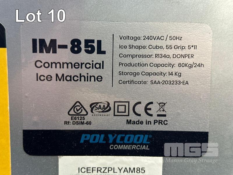 ICE MACHINE, POLY COOL MOD: IM-85L 85 LITRE CAPACITY 240V, 10 AMP PLUG