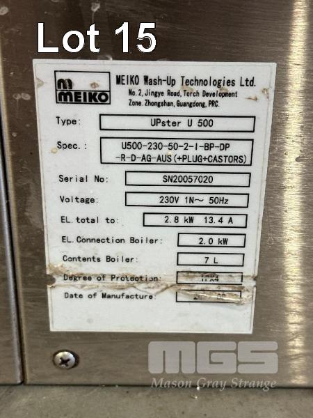UNDERBENCH COMMERCIAL DISHWASHER, MEIKO MOD: UPSTER U500 DOM: 2022 240V, 15 AMP PLUG