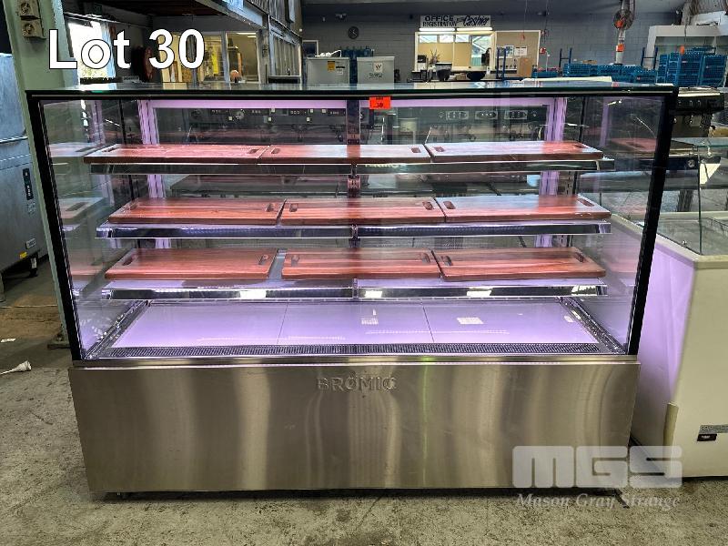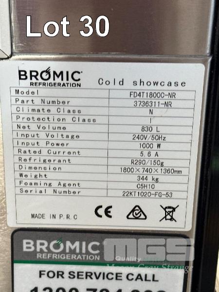 REFRIGERATED CAKE DISPLAY, BROMIC MOD: FD4T1800C-NR 830 LITRE CAPACITY 4 WAY GLASS 1800 x 740 x 1360mm 240V 10AMP PLUG