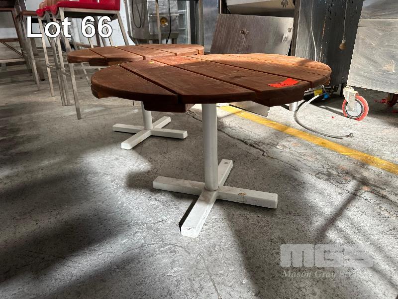 2 x TIMBER TOP ROUND COFFEE TABLES, 600 x 475mm